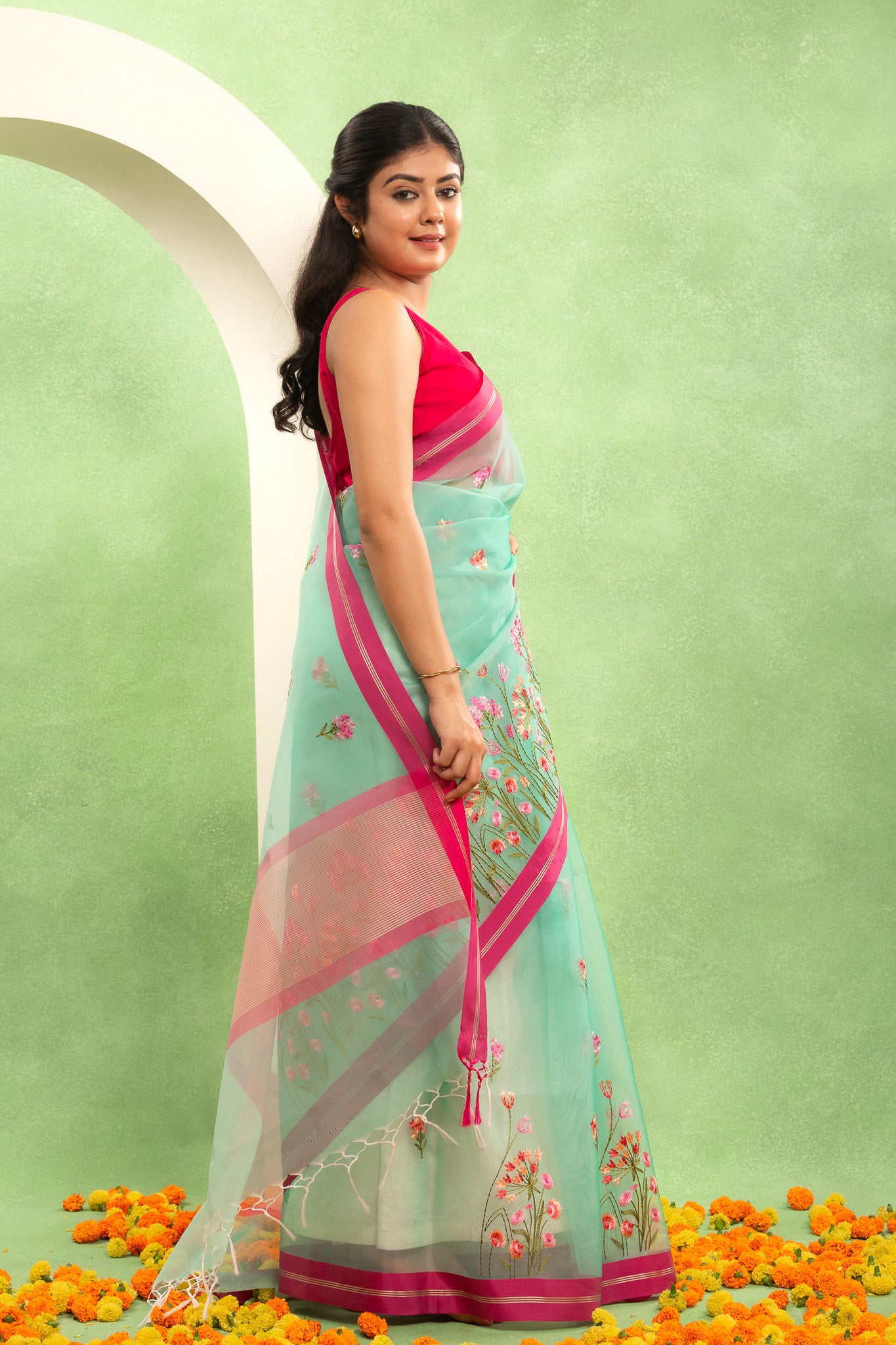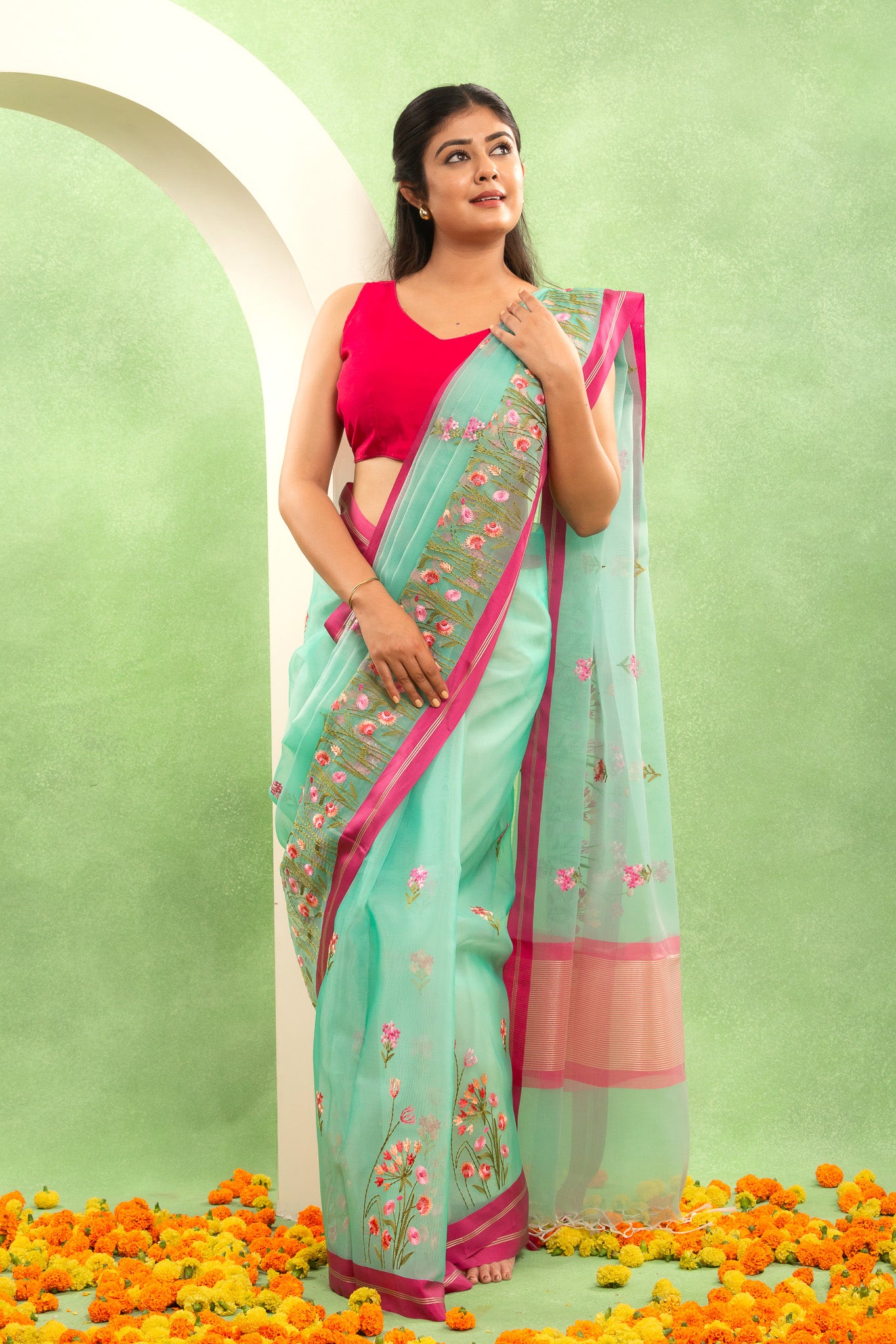 Aqua Mist Banarasi Organza Saree