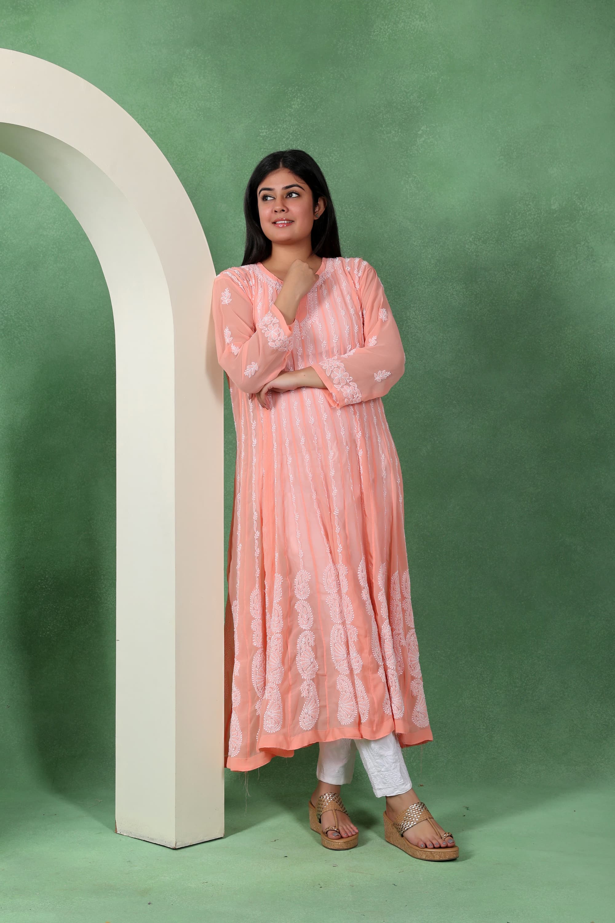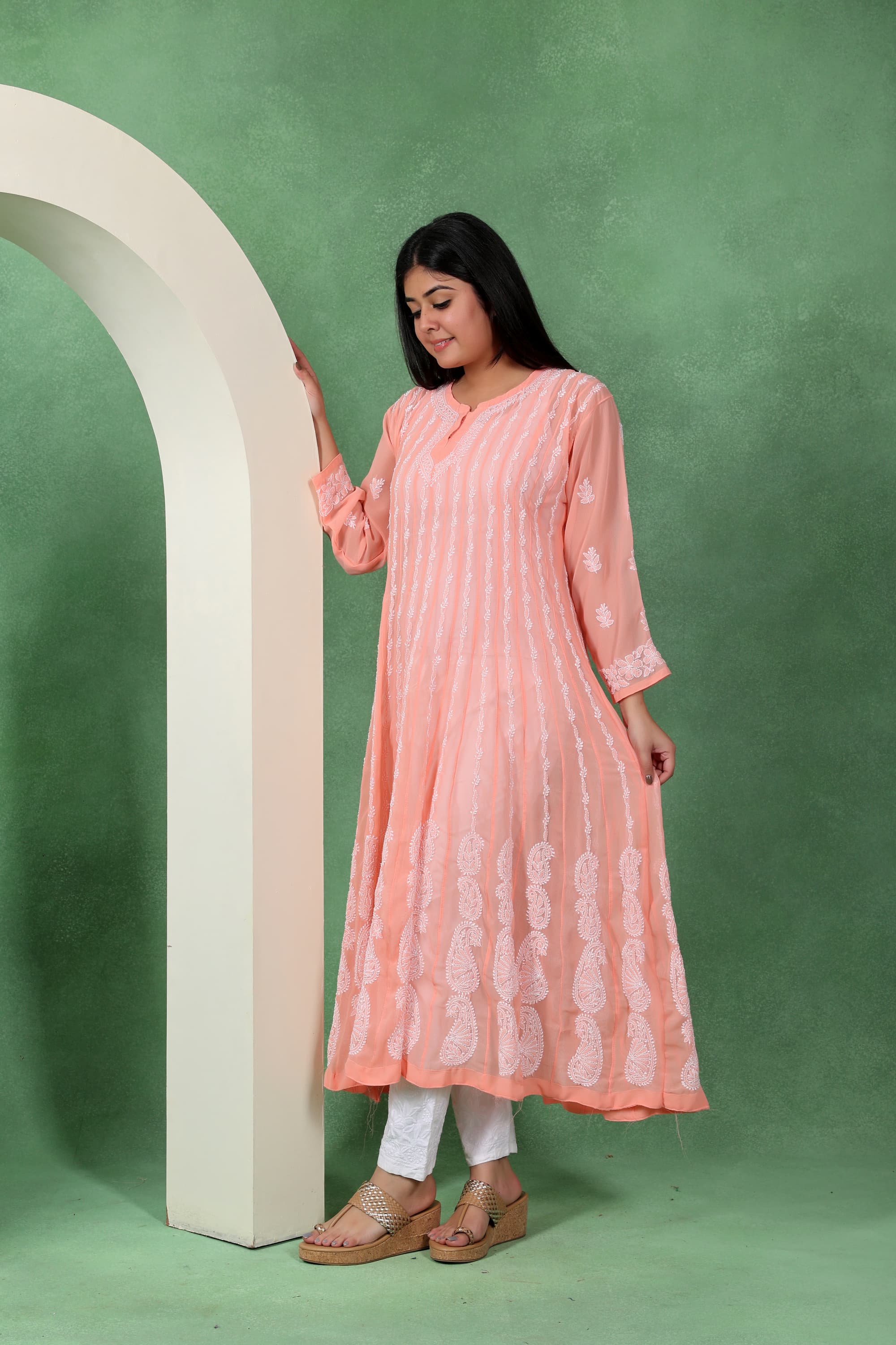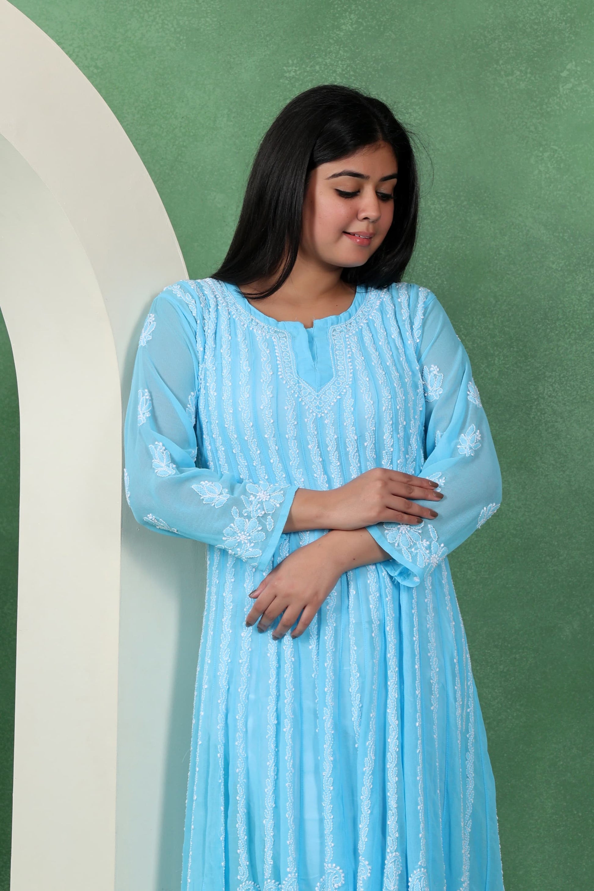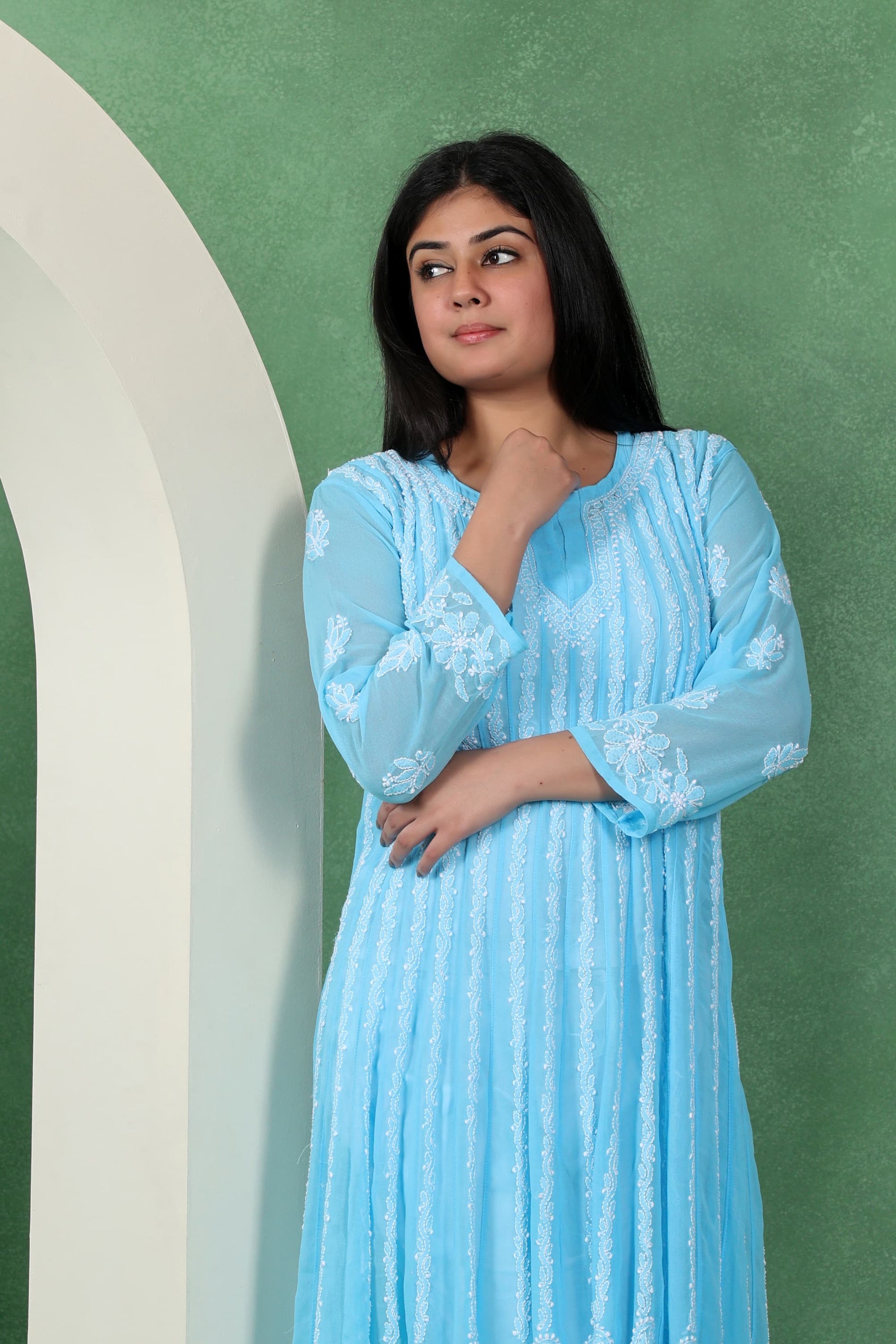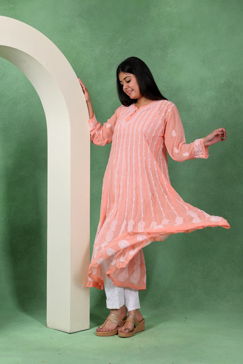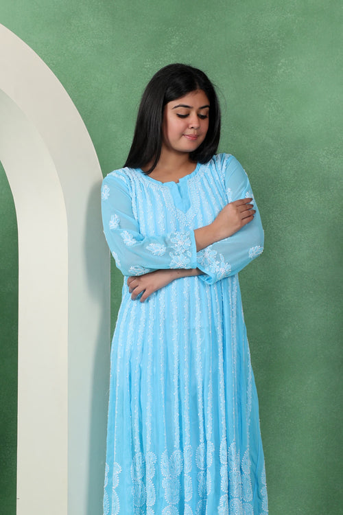 Chikankari Angarkha Anarkali Kurti