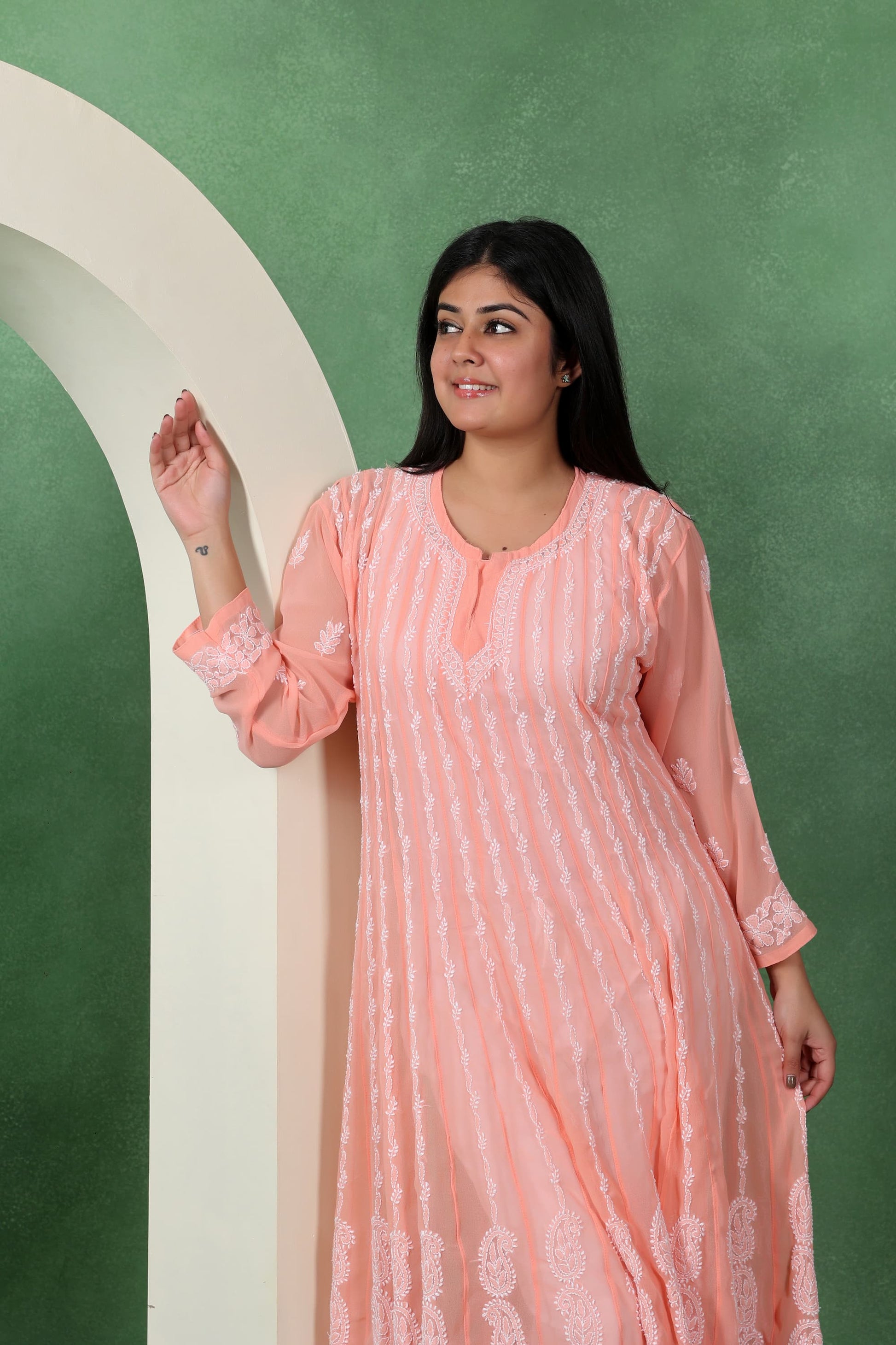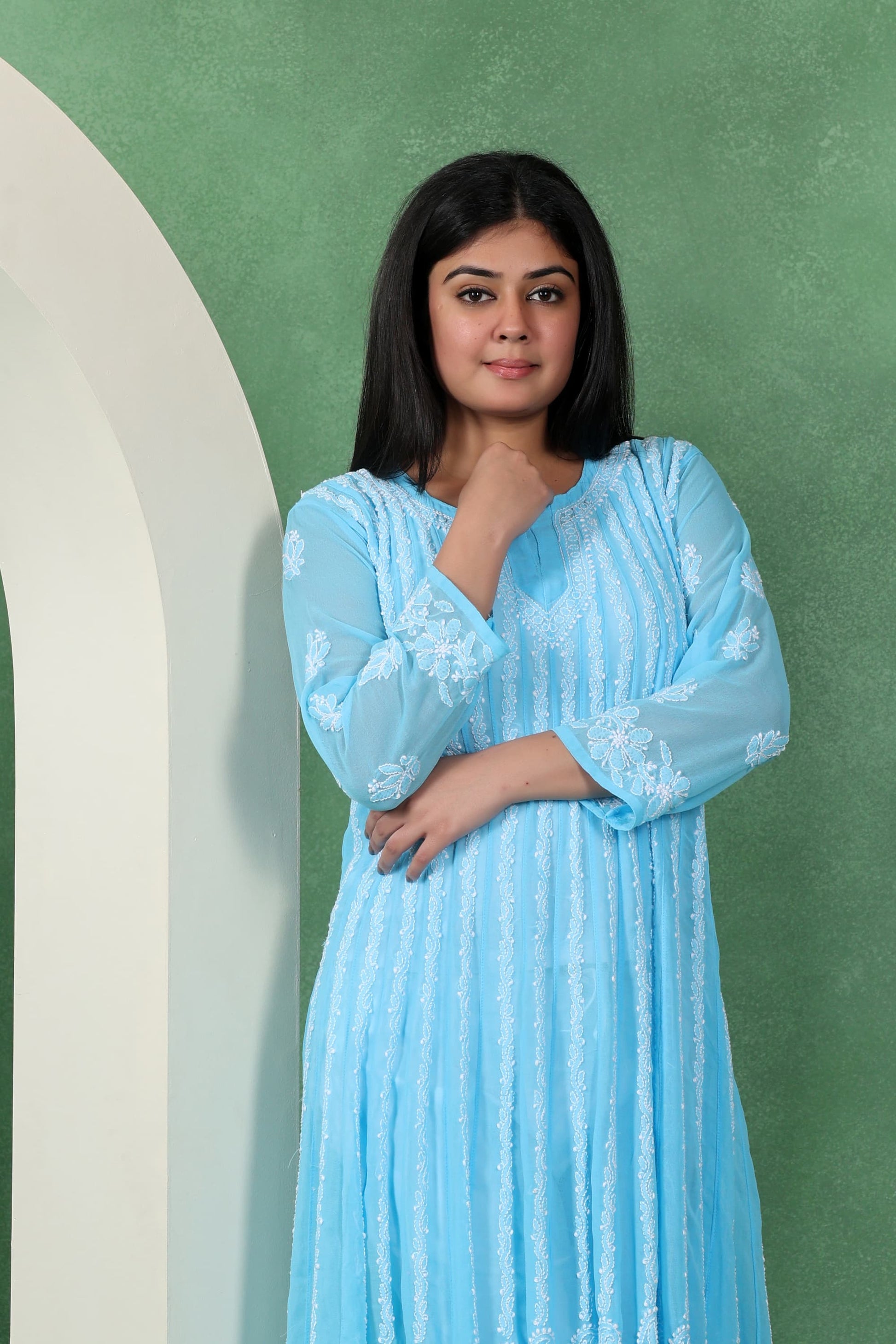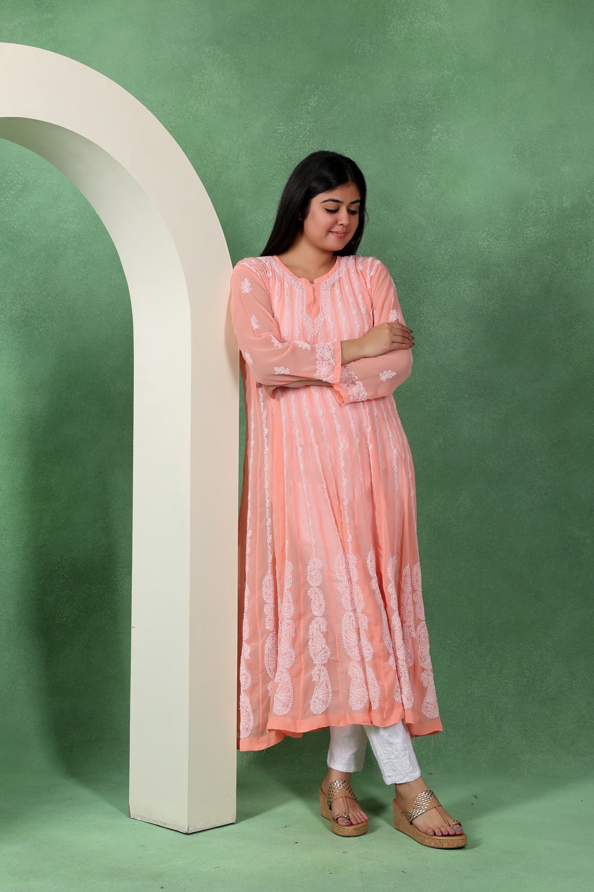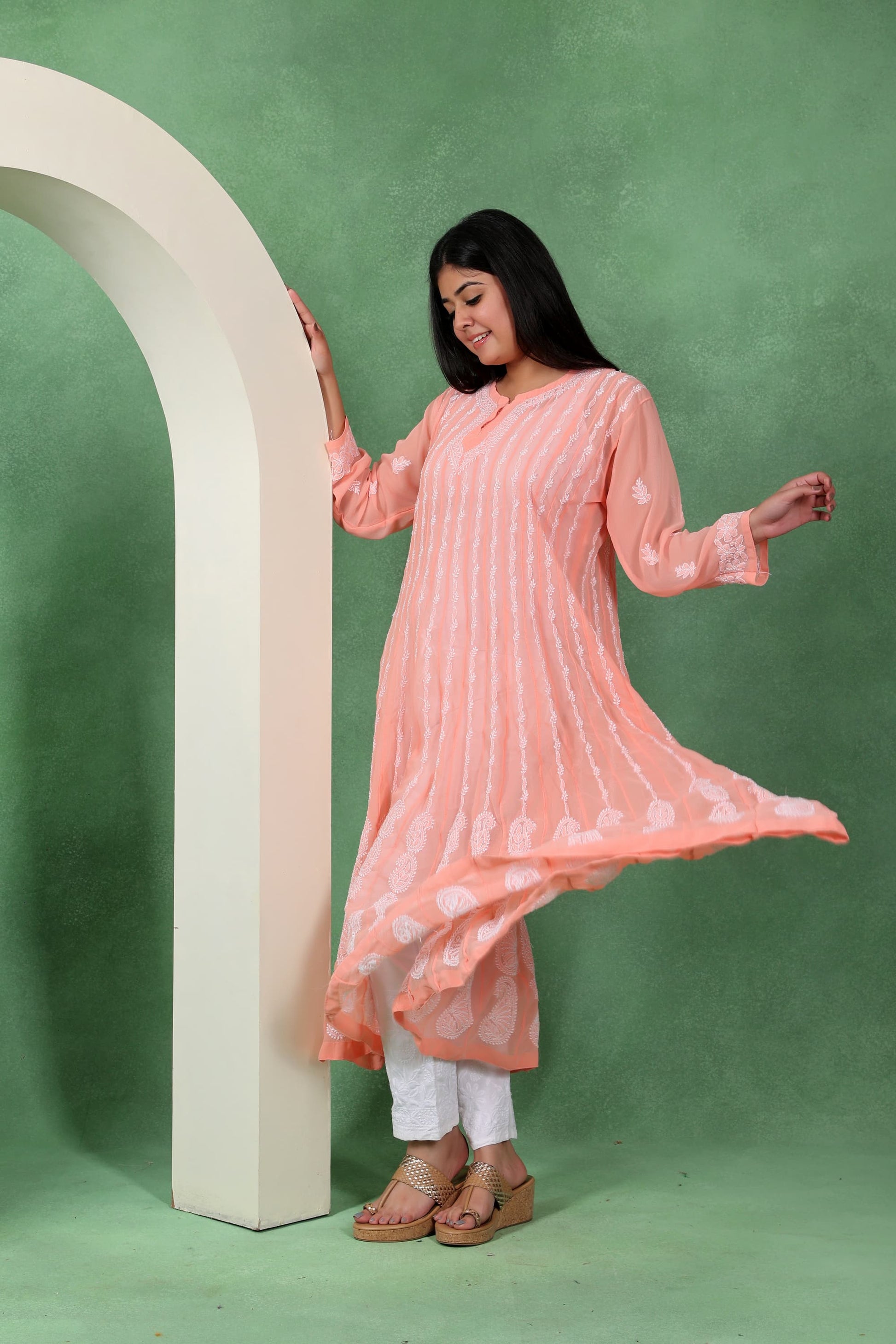 Chikankari Angarkha Anarkali Kurti