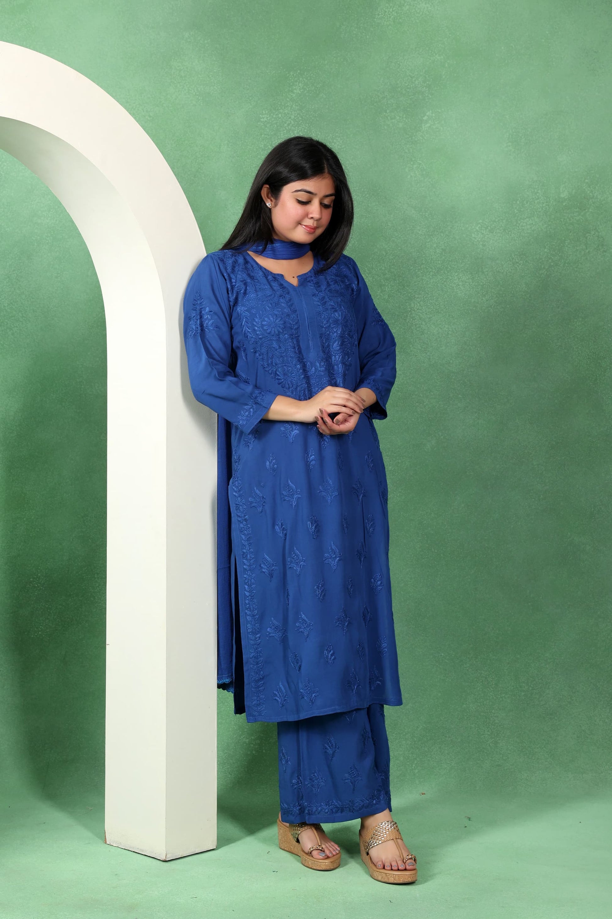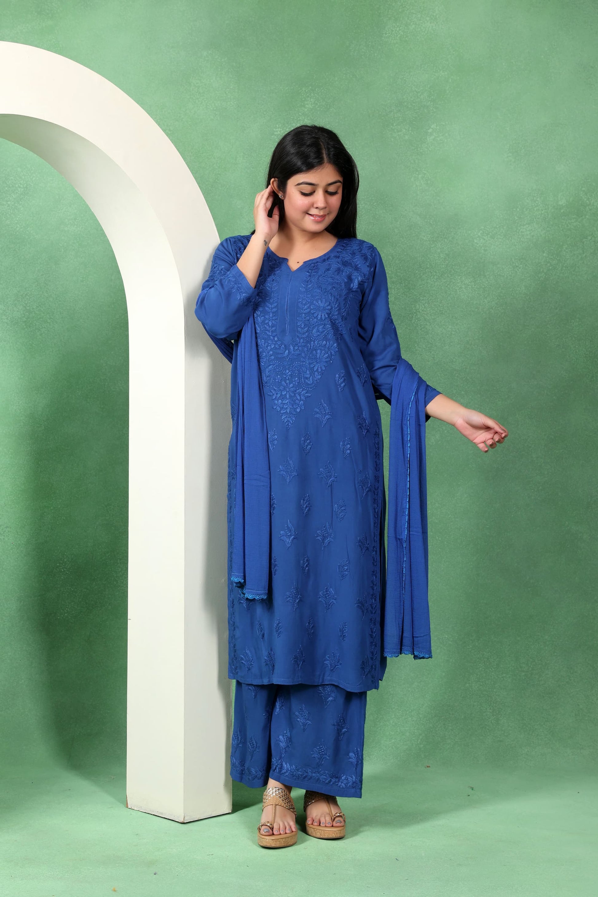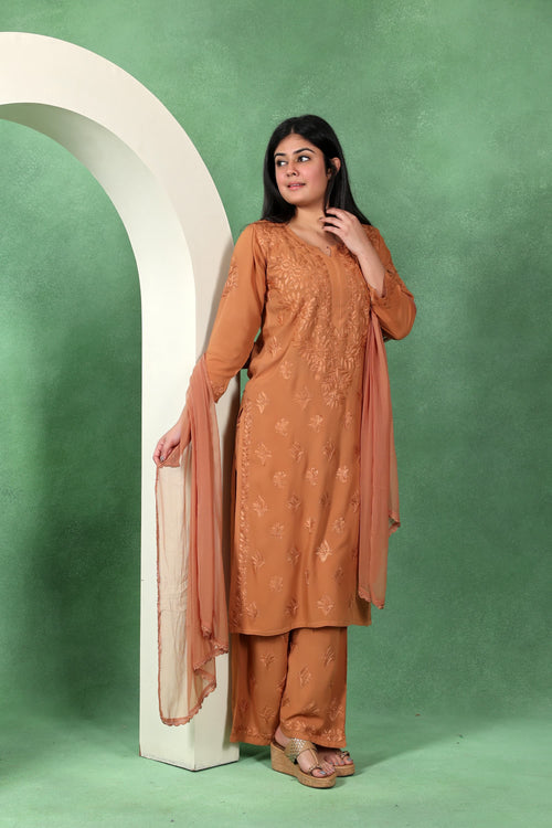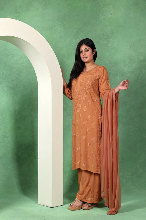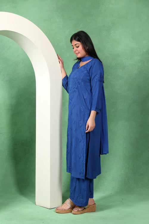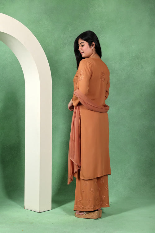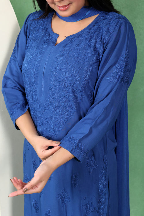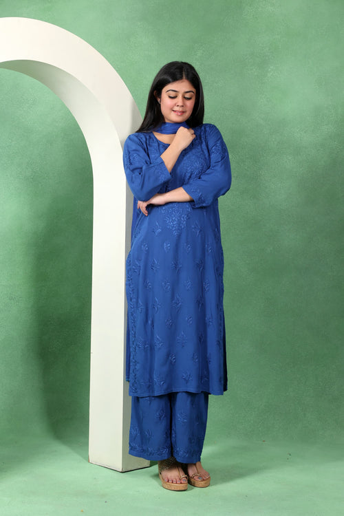 Chikankari Kashmiri 3 Piece Palazzo Set with Modal Dupatta
