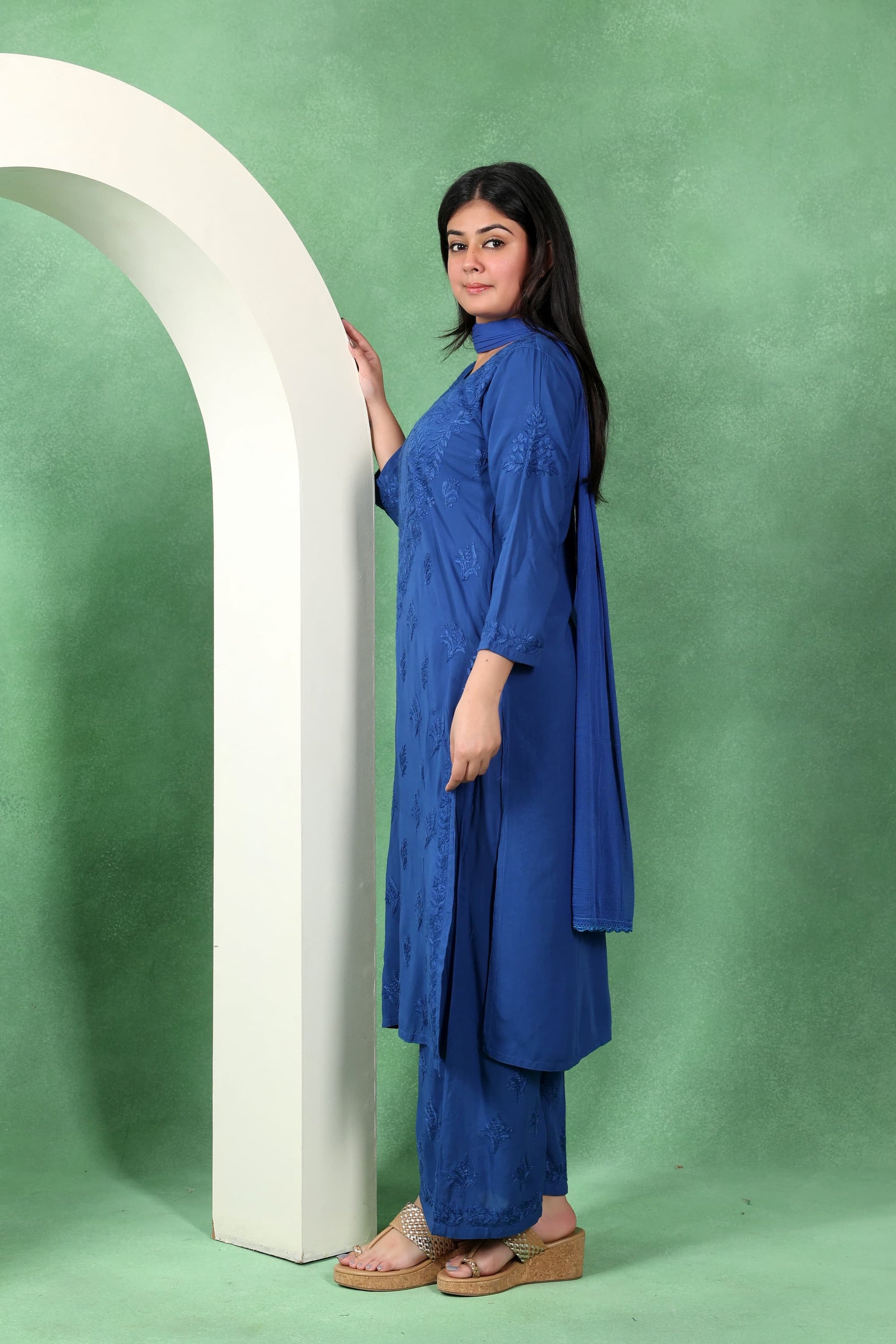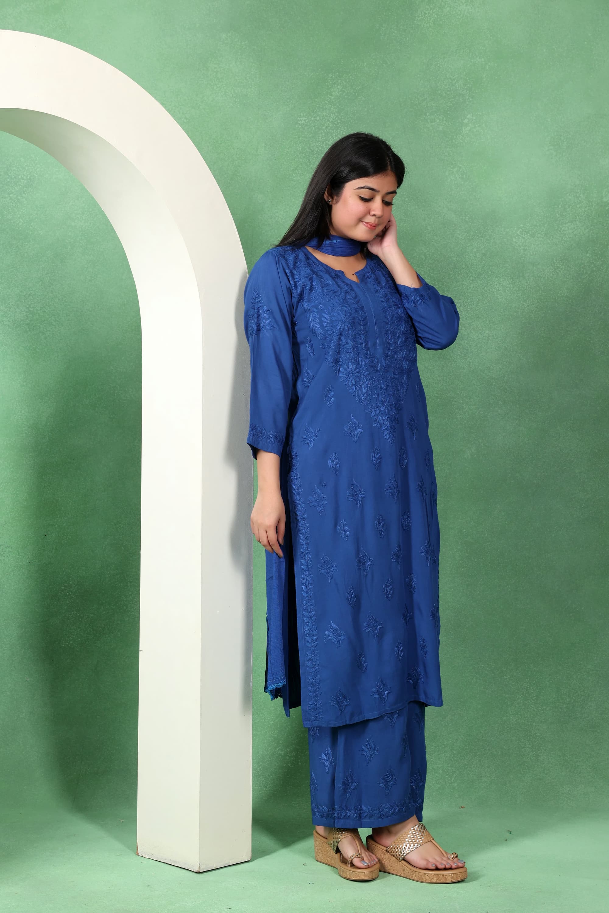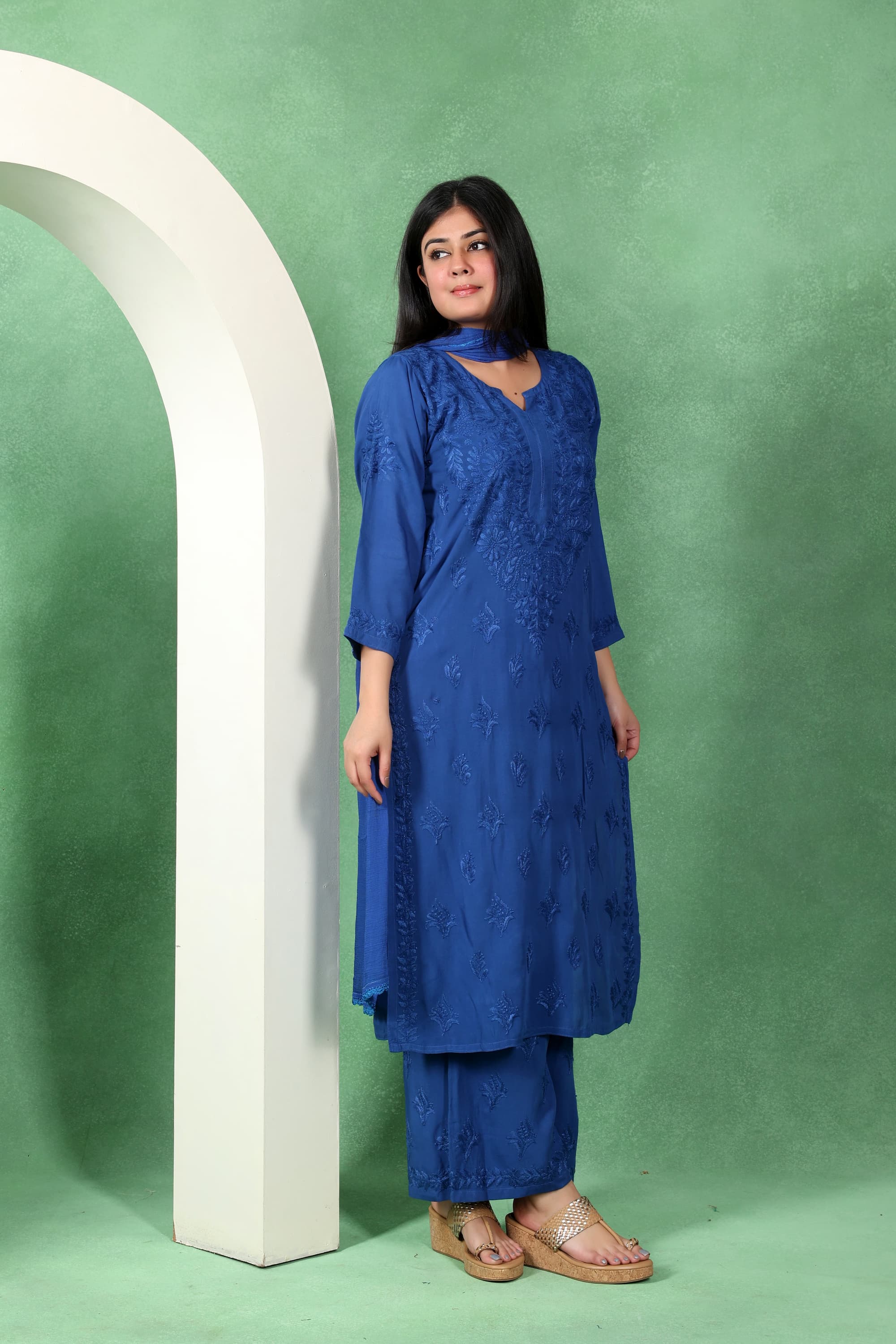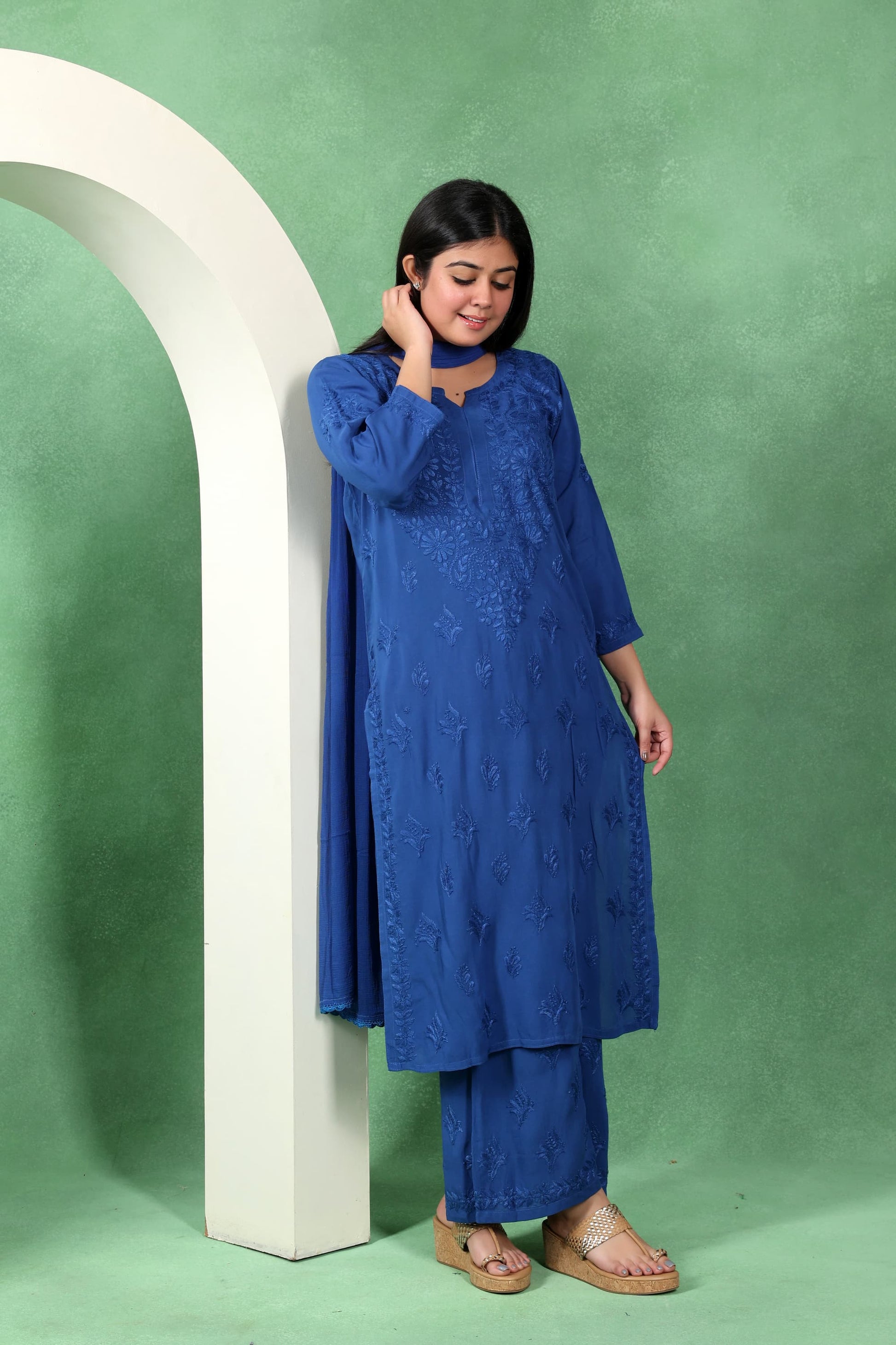 Chikankari Kashmiri 3 Piece Palazzo Set with Modal Dupatta
