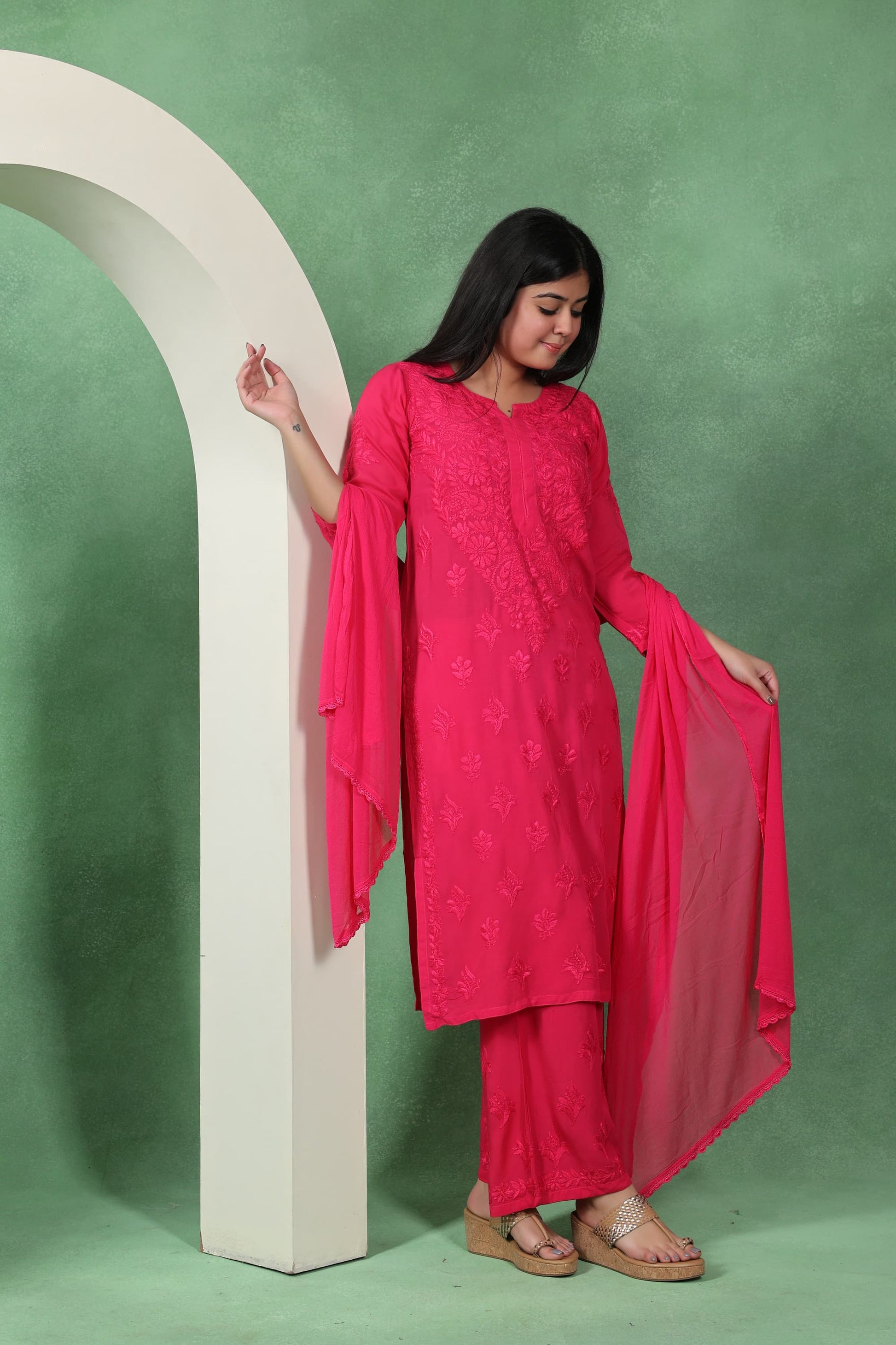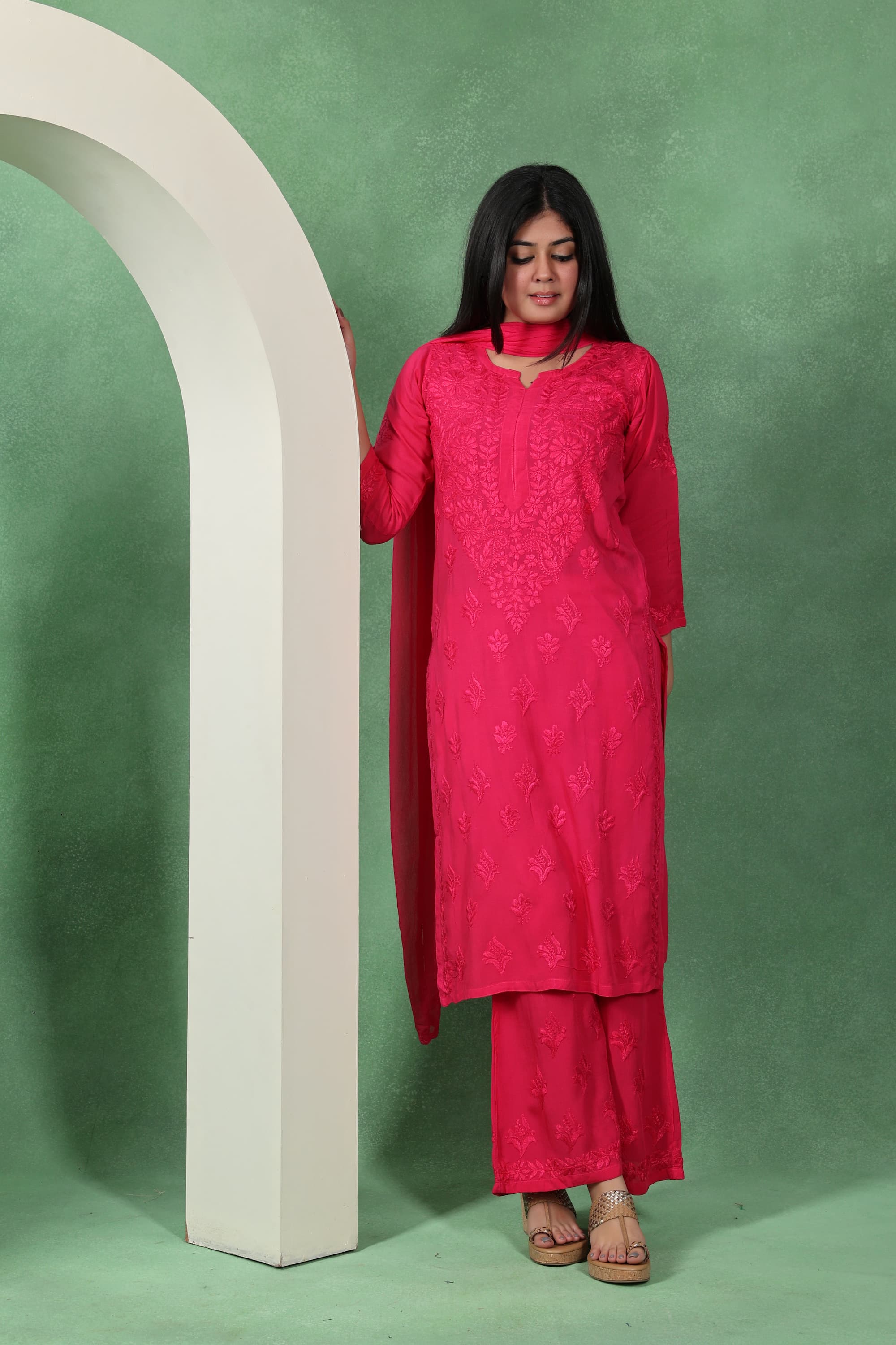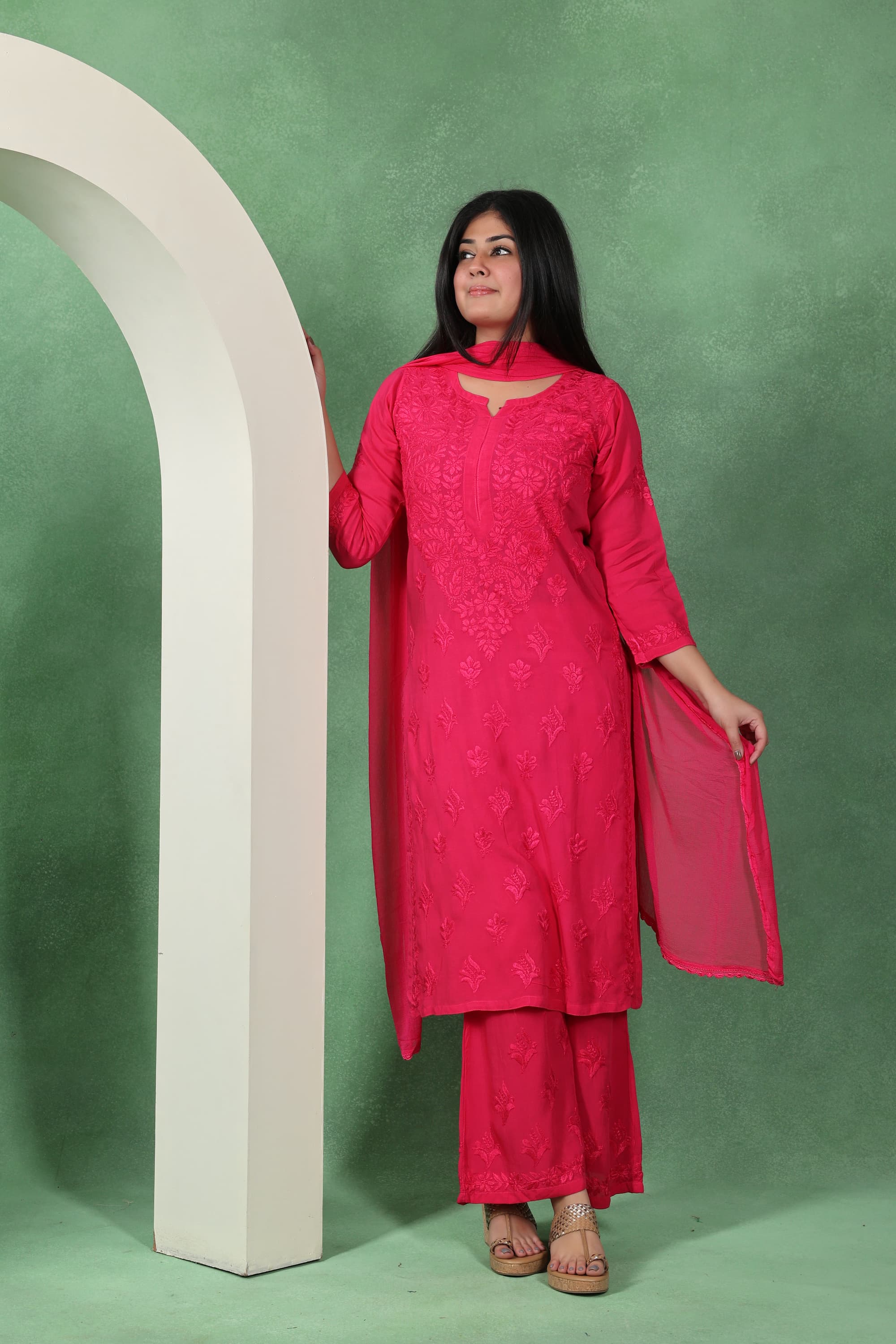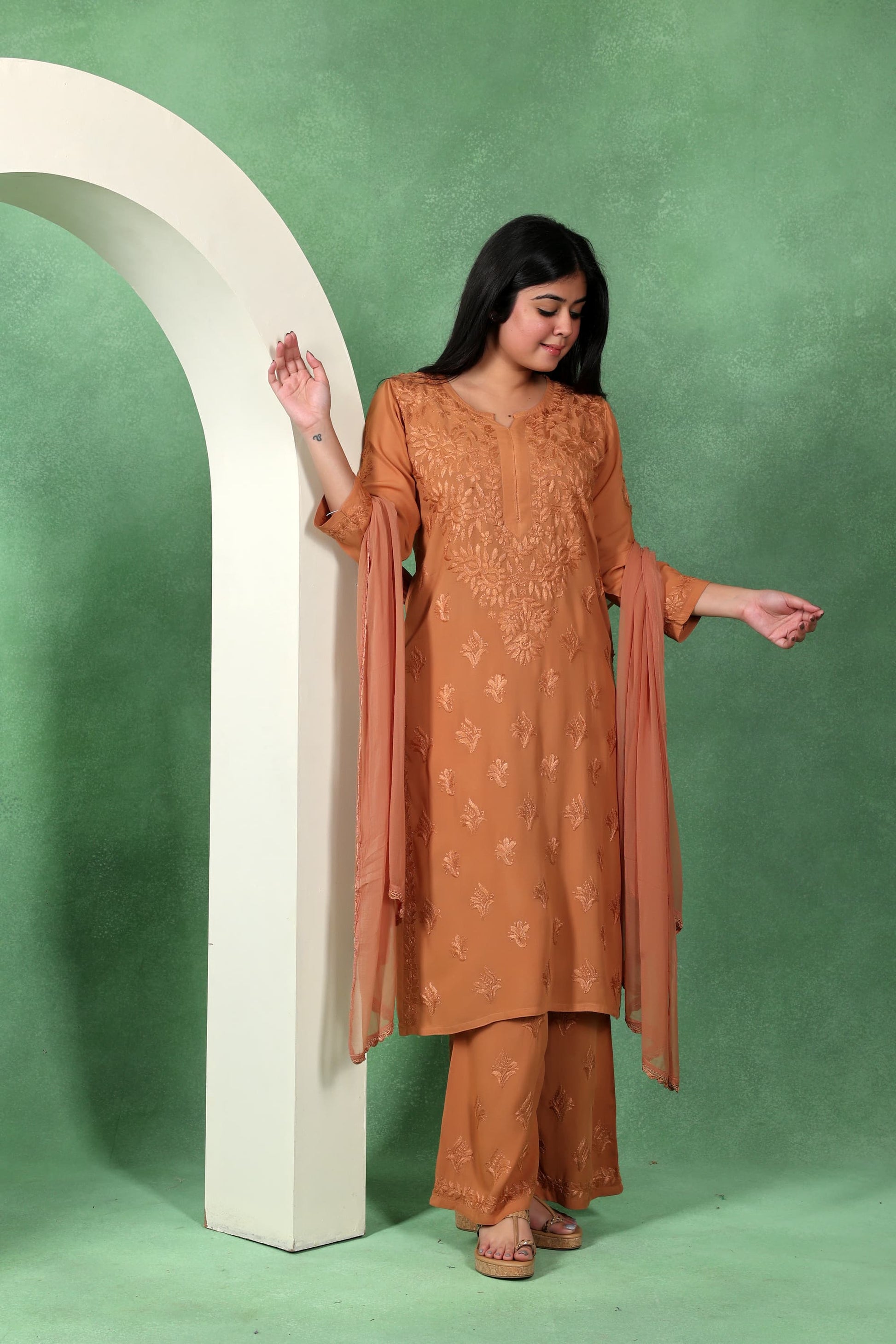 Chikankari Kashmiri 3 Piece Palazzo Set with Modal Dupatta