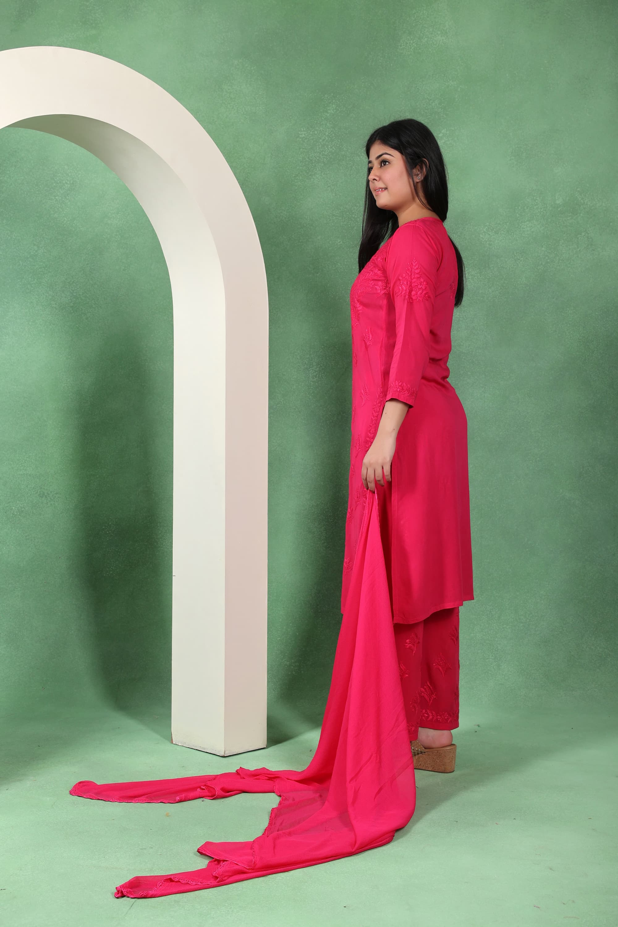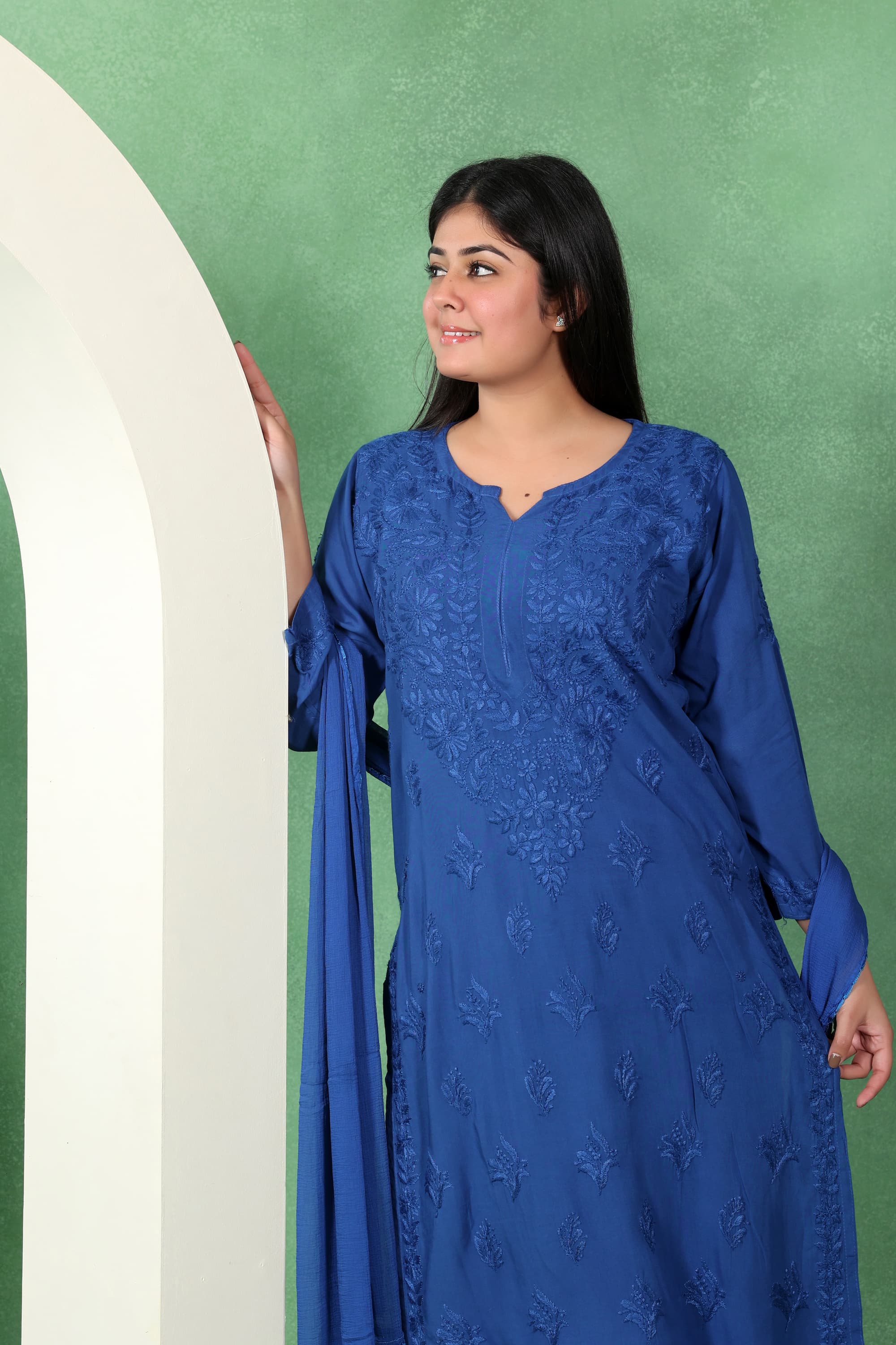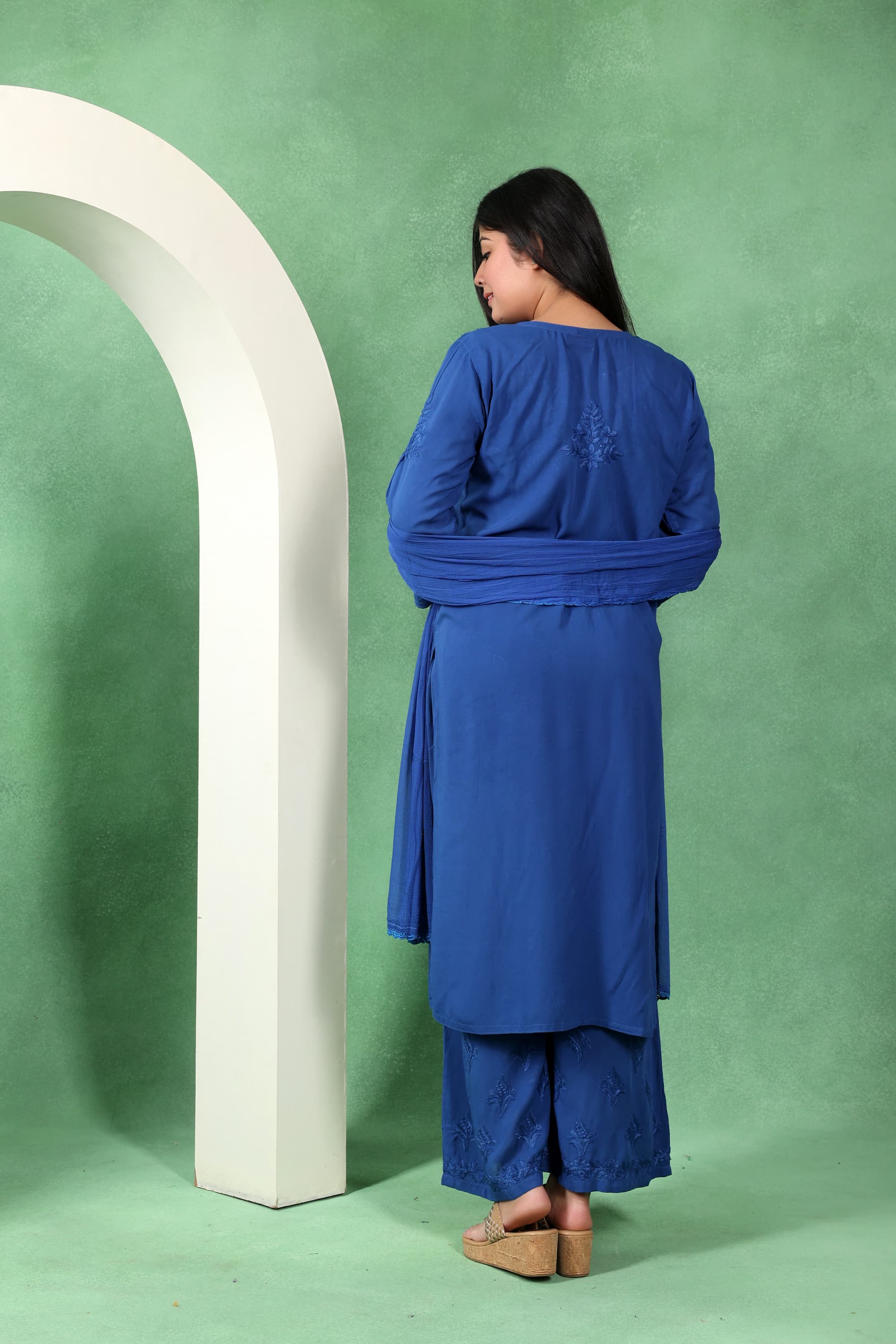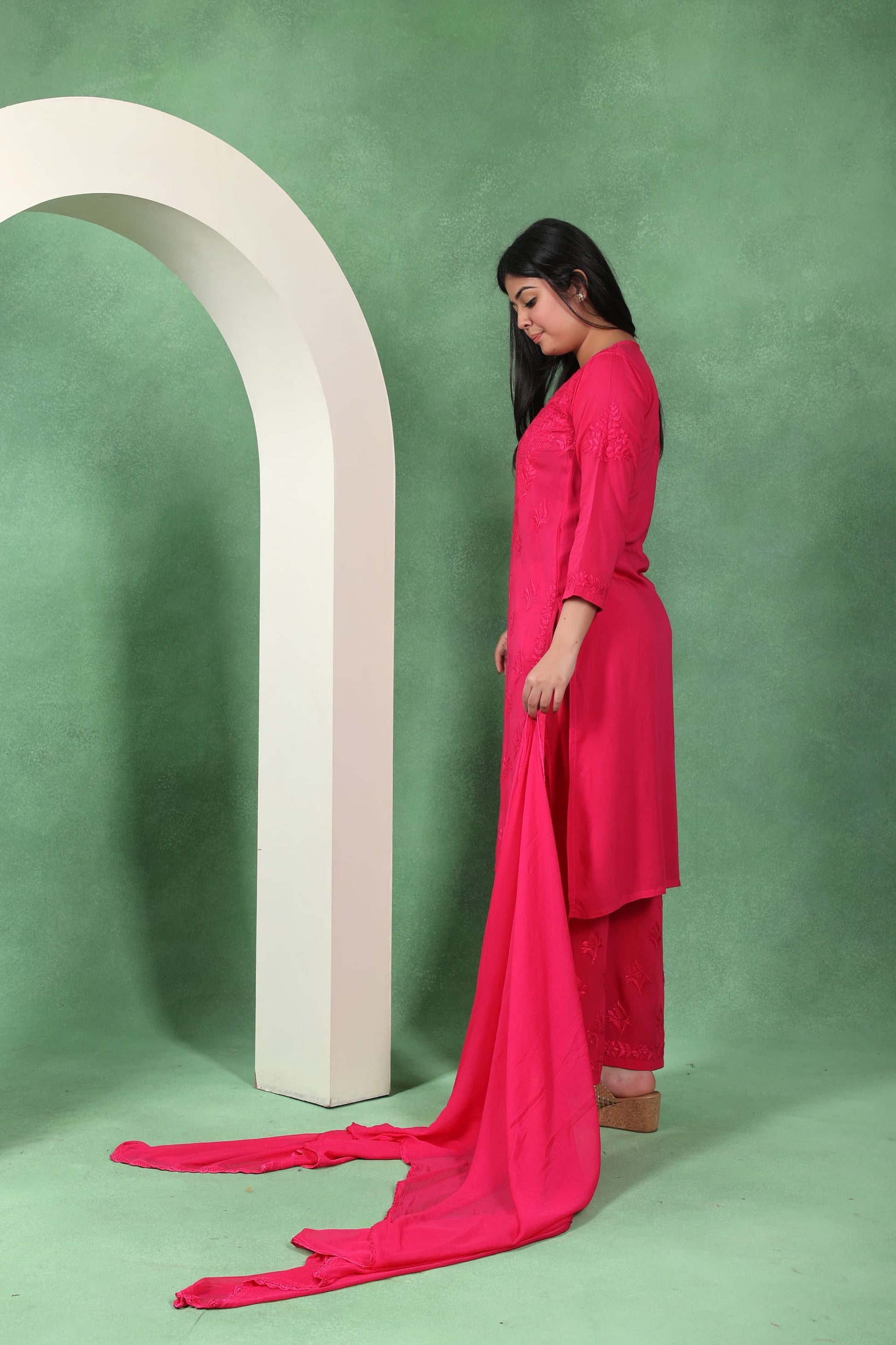 Chikankari Kashmiri 3 Piece Palazzo Set with Modal Dupatta