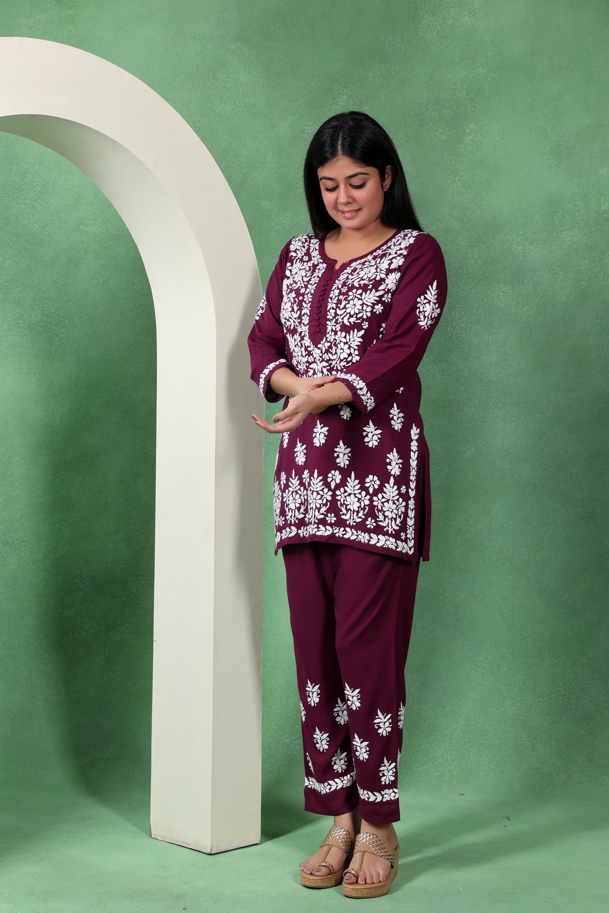 Chikankari Kashmiri Straight Kurta Set