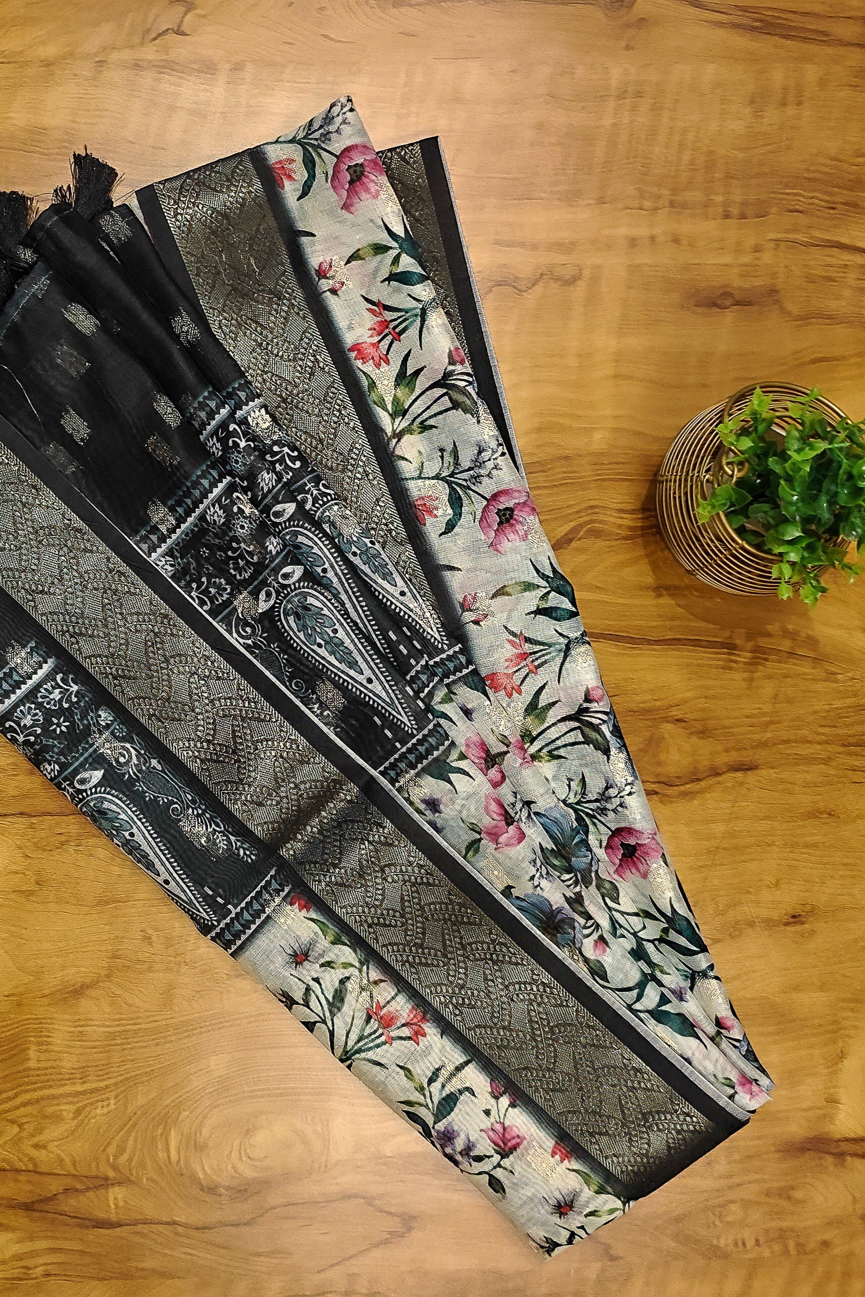 Banarasi Zari Weave Suit Fabric with Contrast Digital Print Dupatta